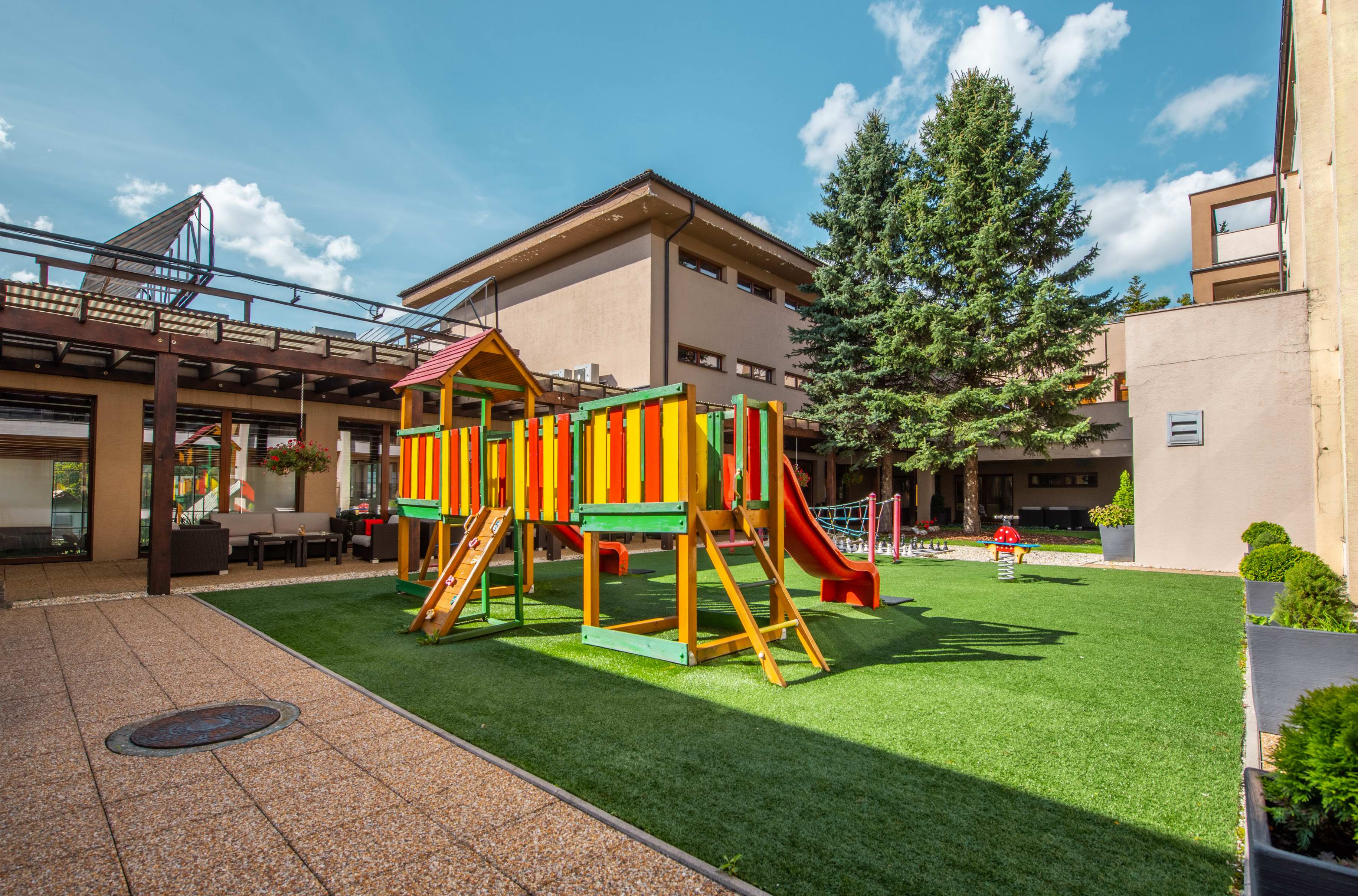 Viacero herní pre deti, rodinný zážitkový bazén a obrovský park s množstvom detských ihrísk vás pozývajú na spoločné hranie. Vďaka odborne vyškolenej starostlivosti o deti si rodičia môžu dopriať trochu času pre seba, oddýchnuť si v tichom wellness centre alebo si dopriať relaxačnú masáž či kozmetickú procedúru. Chcete zážitky len ochutnať, alebo sa v nich budete celé dni radostne kúpať? Rozhodnutie je vo Vašich rukách – my Vám k tomu ponúkame skvelé zľavy! Rezervujte si 2 noci so zľavou 5 %, 3 noci so zľavou 15 % – kedykoľvek počas týždňa!