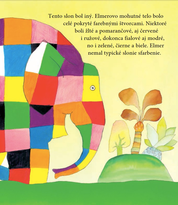Elmer nevyzerá ako normálny sivý slon. Priam hýri farbami, a tak nečudo, že sa mu ostatné slony posmievajú. Je mu z toho smutno. Kiežby len bol taký obyčajný! Iste by sa mu potom prestali vysmievať. Elmer sa pokúsi zmeniť… ako to dopadne? Prečítajte si dnes už kultový príbeh Davida McKeea, preložený do 50-tich jazykov, v ktorom autor vyzdvihuje, aké dôležité je zostať sám sebou a mať sa rád aj s odlišnosťami, no vždy sa vedieť na sebe aj zasmiať. Zatiaľ vyšli dva diely ELMER a ELMER A DÚHA.