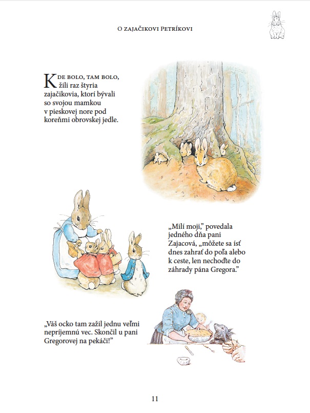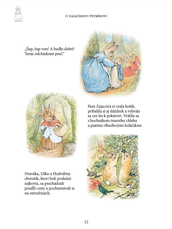 Dobrodružstvá zajačika Petríka je prvá kniha, ktorú Beatrix Potter, najobľúbenejšia anglická spisovateľka a ilustrátorka pre deti, napísala, a zároveň je aj prvým slovenským vydaním celého pôvodného diela. Všetky deti určite potešia štyri veselé príbehy o kultovom zajačikovi Petríkovi, ktorý aj s ďalšími huncútmi rád neposlúcha. Dokonca aj po tom, čo vyrastú, dobrodružstvo si ich stále nájde.