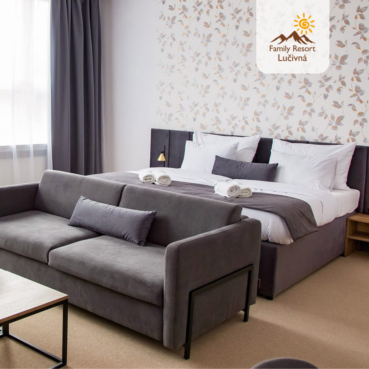 Moderne zariadené izby a priestranné rodinné apartmány uspokoja nároky aj náročnejšej klientely, dve interiérové detské ihriská zas v prípade menej priaznivého počasia potešia malých návštevníkov. Areál o rozlohe viac než 42 ha a vybavenie rezortu svojou ponukou zabaví celú rodinu počas celého dňa. Počas pobytu máte k dispozícií.