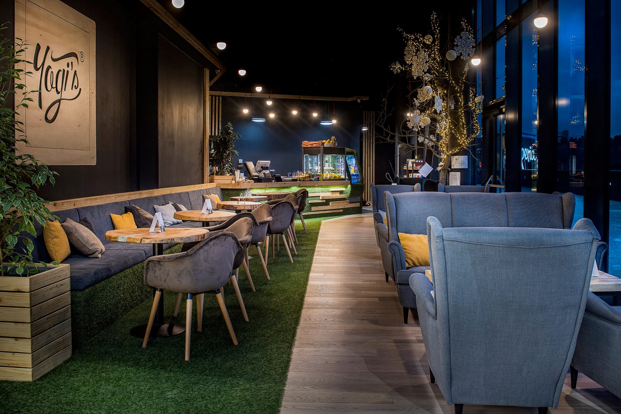 YOGI´S® prináša čerstvý vietor do kaviarenského prostredia so svojim unikátnym dizajnom, skvelou kávou a geniálnymi koláčmi. Yogi’s sa spája s myšlienkou vytvorenia oddychovej zóny, v ktorej bude kaviareň dotvorená príjemným záhradným dizajnom, ktorý hneď na prvý pohľad chytí každého za srdce. Naša kaviareň chce byť iná a pokúšame sa o ďalší posun vnímania shopping centra aj ako miesta príjemného oddychu.