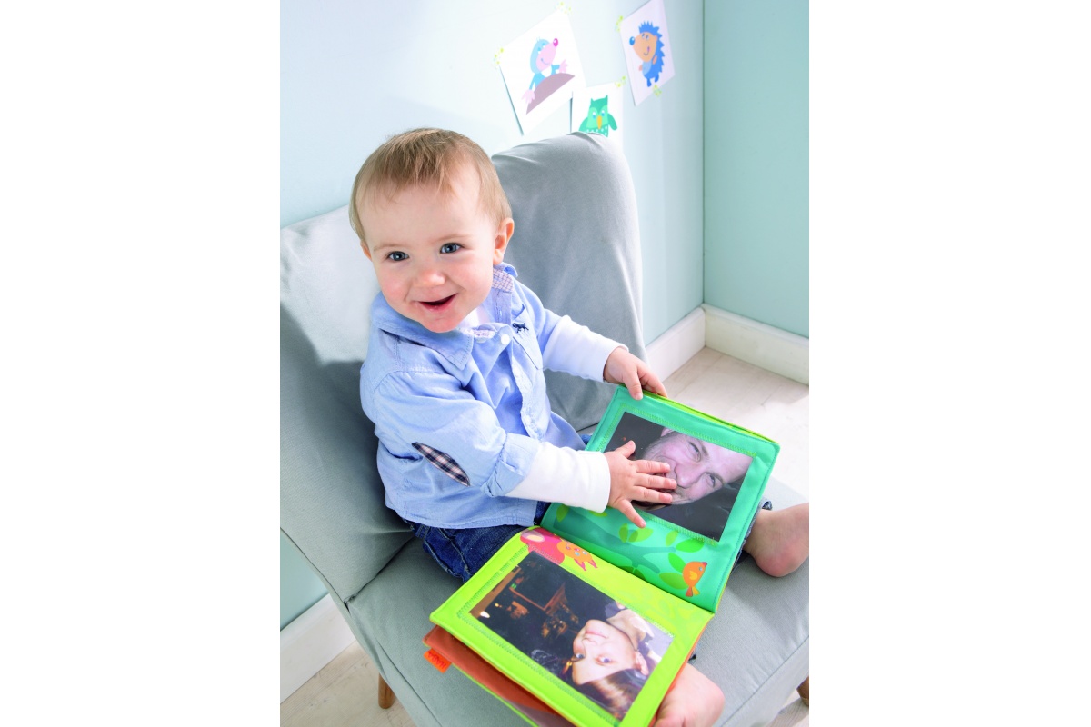 – prezeranie fotiek s dieťatkom, ľahký textilný fotoalbum na členov najbližšej rodiny pre podporu rozvoja reči (ma-ma, ta-ta, ba-ba, …) alebo na obľúbené fotky so zvieratkami z farmy alebo ZOO (ako robí kravička, ovečka, lev, …)