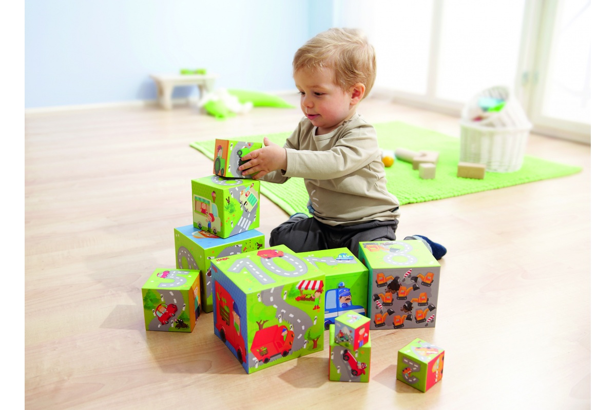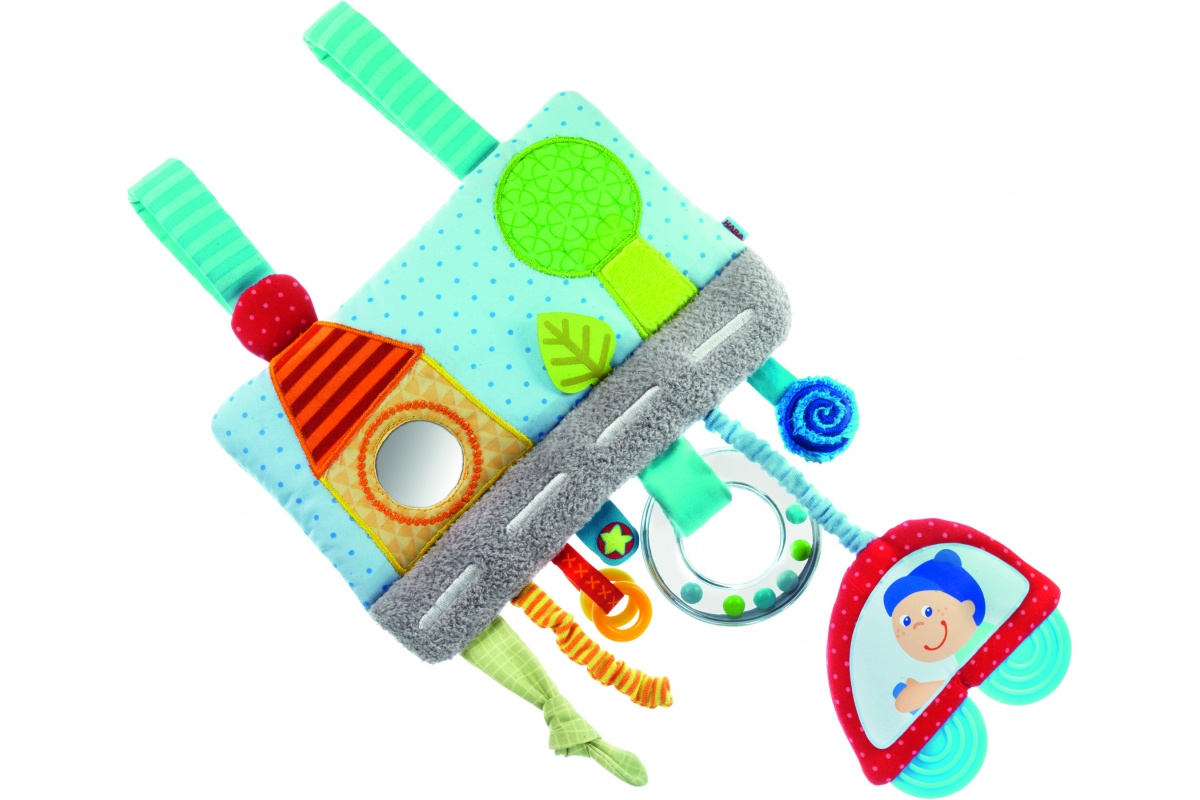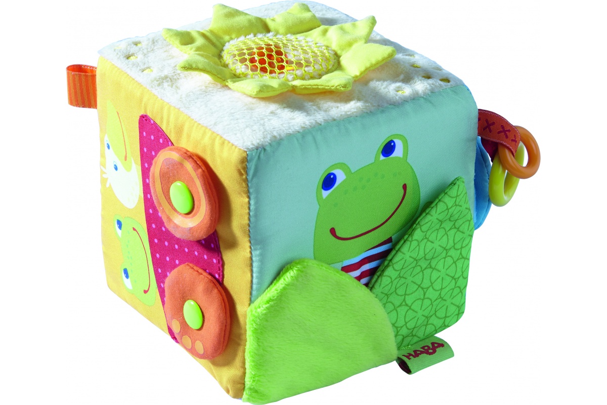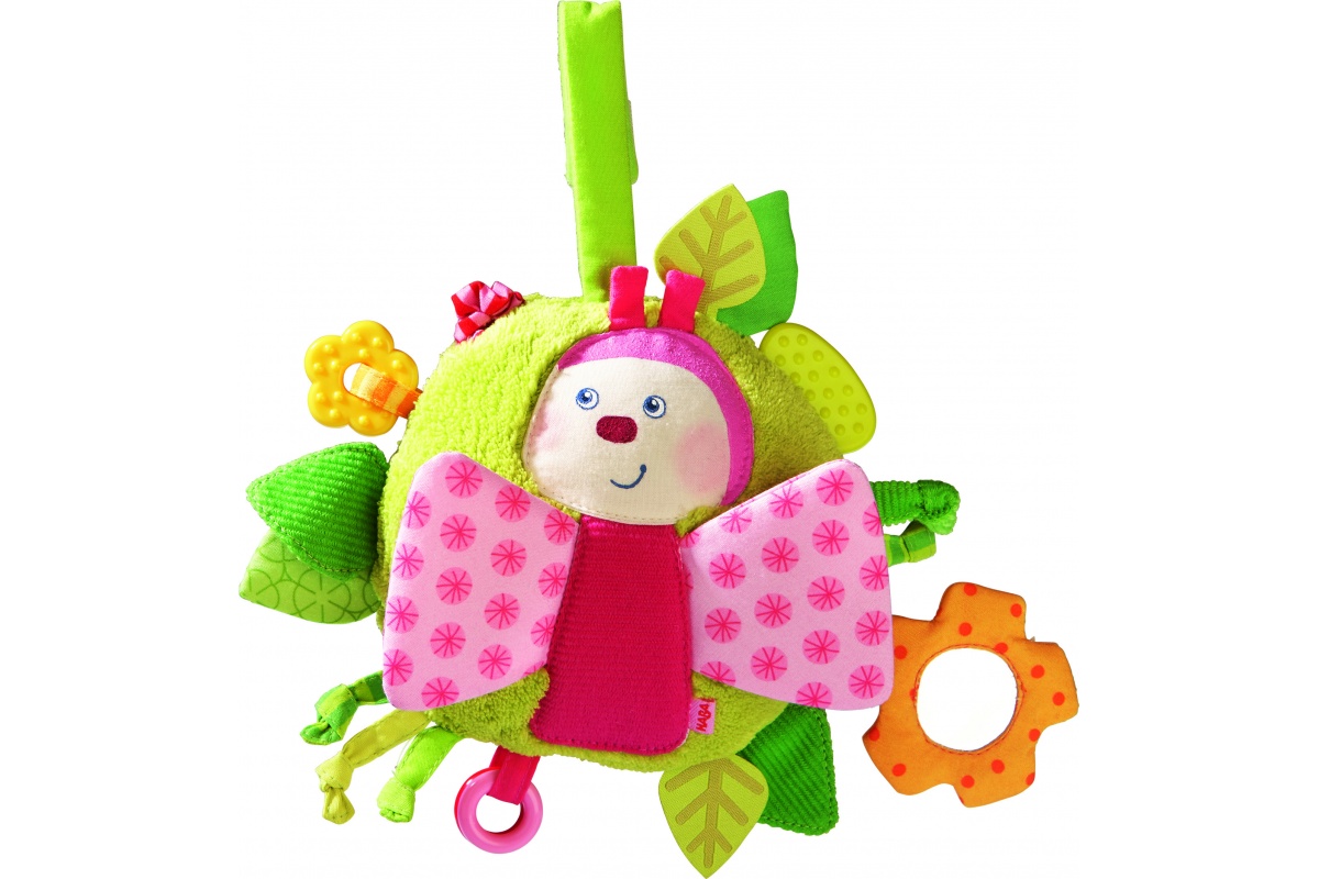 – aktívne hračky na skúmanie pre malé rúčky alebo na zavesenie – Aktívne hračky majú mnoho farebných komponentov, rôznych tvarov, štruktúr, materiálov, často obsahujú malé zrkadielko, časti vydávajúce šuchotavý zvuk, pre rôznorodé vnímanie najmenších. Ideálne, keď sa dajú pripevniť alebo zavesiť na kočík alebo postieľku, aby na ne dieťatko dobre videlo a dočiahlo. Chrobáčik, Hracia kocka, Závesná hračka