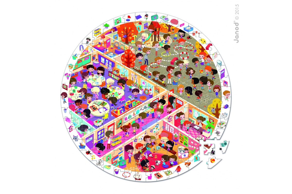 Pozorovacie puzzle – inovatívne okrúhle puzzle s drobnými dielikmi (208 ks) s pozorovacou hrou po ich zložení. Na okraji puzzle sú nakreslené obrázky. Tieto je potom potrebné nájsť v poskladanom obrázku. Motívy Škola, Nemocnica, Požiarnici, Kuchyňa, Koníky. Balené v štýlovom kufríku, do ktorého sa puzzle jednoducho zbalia a zároveň je krásnym doplnkom detskej izby.