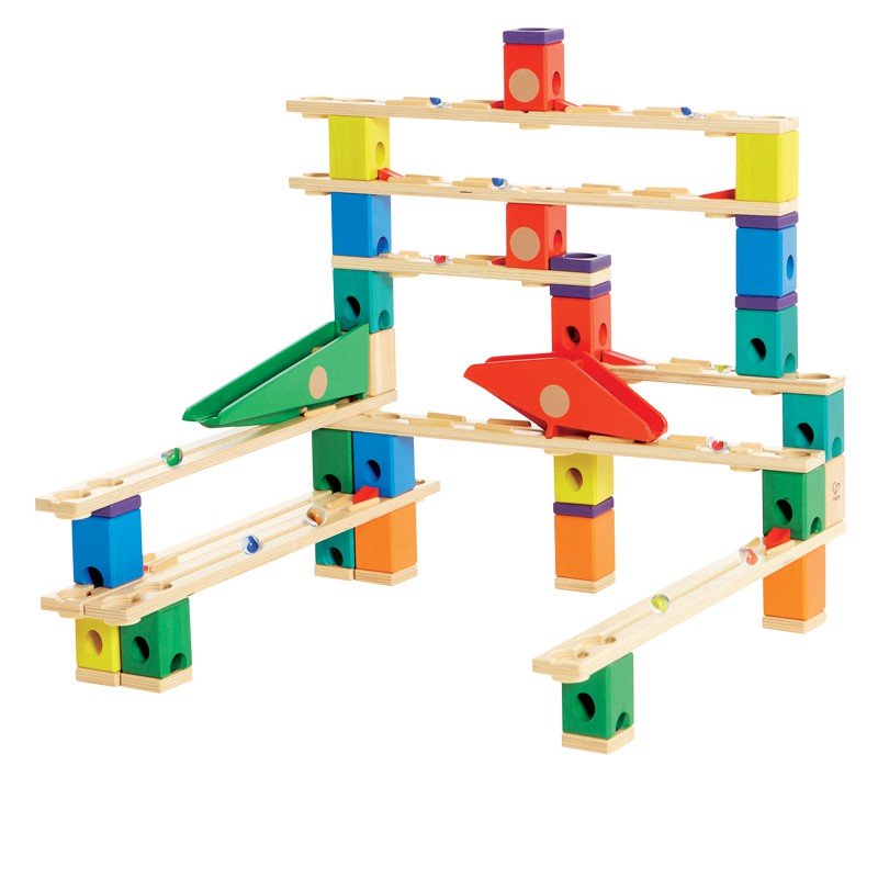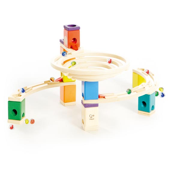 Dávame do pozornosti guličkové dráhy, ktoré sú určené pre deti od 4 rokov. Podporujú priestorové myslenie detí a jemnú motoriku rúk pri hre s guličkovou dráhou. Malá, ale mocná – taká je drevená guličková dráha Quadrilla s kruhovým objazdom, ktorý láka všetky zvedavé pohľady. Hoci je táto dráha prispôsobená schopnostiam začiatočníkov, nepreberné množstvo kompatibilných doplnkov jej ľahko pomôže prispôsobiť sa rastúcim ambíciám malých staviteľov. 91 kúskov v balení zaručí perfektnú zábavu pre celú rodinu.