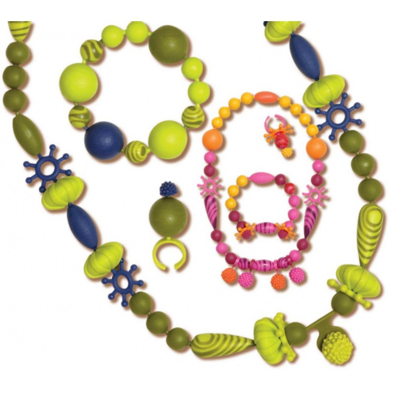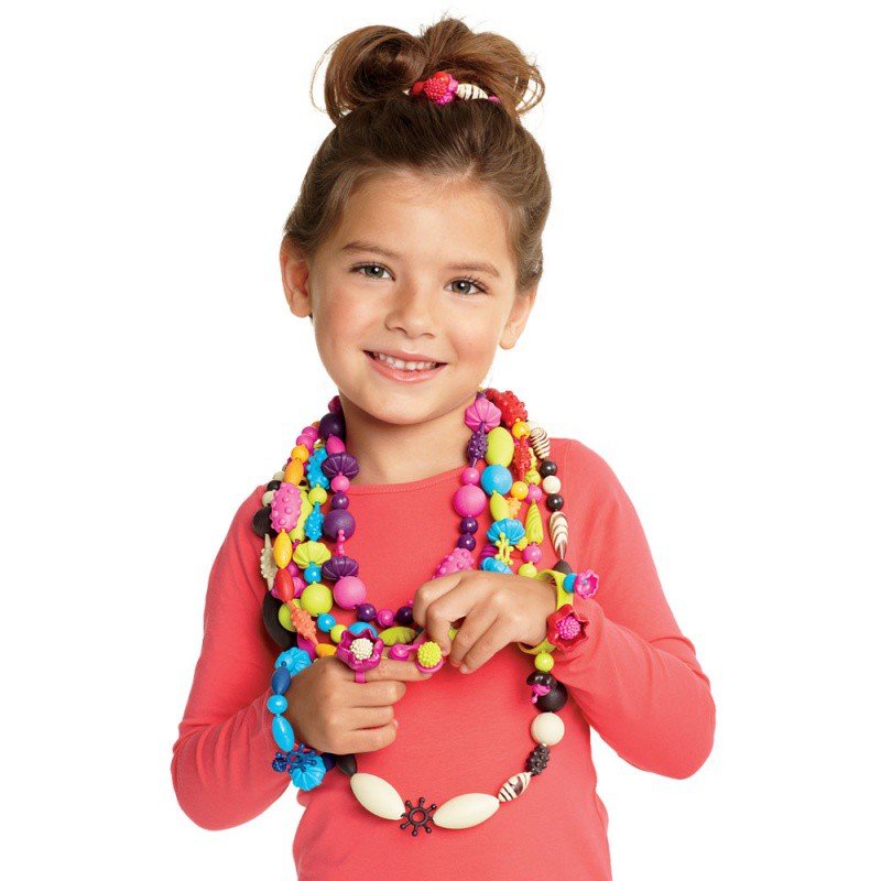 – Korálky, z ktorých vzniká tá najoriginálnejšia bižutéria! Dieťa jednoduchým systémom zacvakávania výbežku do otvoru pospája korálky a zostaví si vlastné náramky, náhrdelníky, prívesky, prstene či iné ozdoby. Unikátne tvary a originálne módne farby v praktickej nádobe s rukoväťou. Výborná hračka pre dievčatá od 4 rokov, ktoré rady tvoria. Stimuluje kreativitu, predstavivosť a výborne precvičí jemnú motoriku rúk. Vnútri produktu je brožúrka s nápadmi, tipmi a trikmi na výrobu bižutérie. Plasty neobsahujú ftaláty ani škodlivé látky.