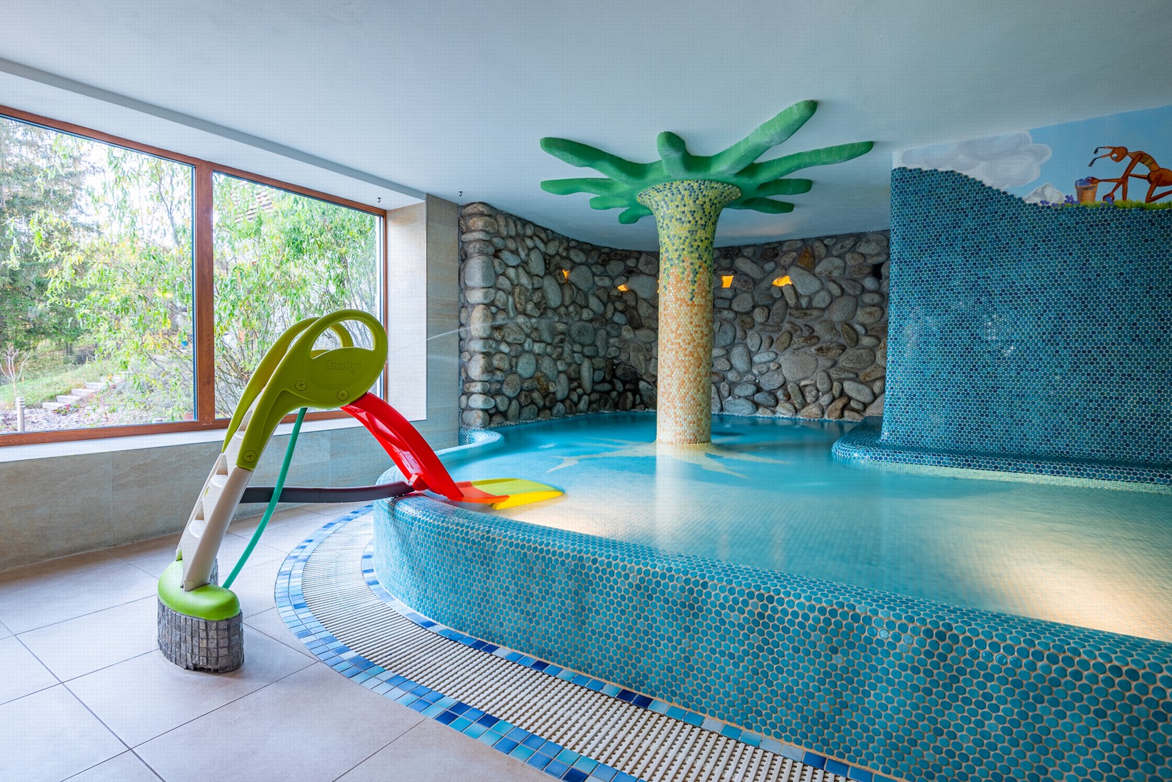 Rodičov poteší bezstarostnosť v krásnom Nature wellness center s rozlohou 2265 m2 (deti majú vyhradené priestory Family Saunas a Aqua & Kids s bazénikom, šmykľavkou a ležoviskom). Gurmánske špeciality s pohárikom vínka, hudobné večery a disco s DJ budú príjemnou bodkou za dobrodružným dňom.