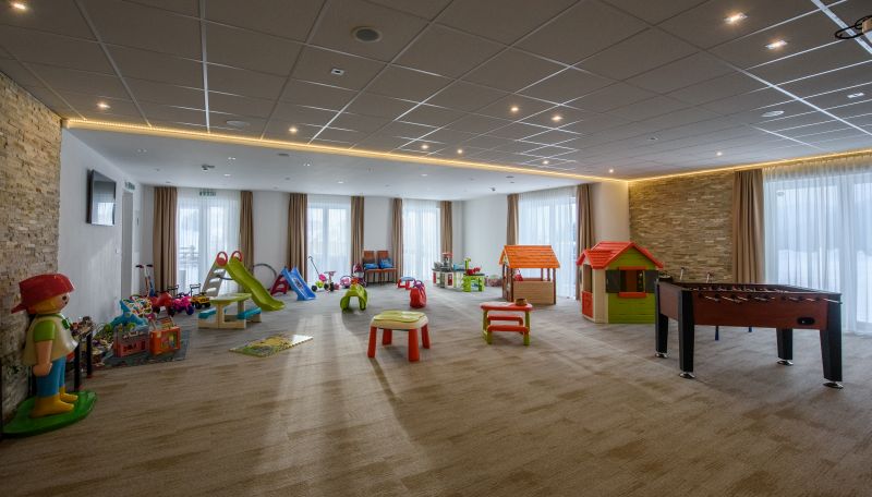 Pre rodinky je k dispozícii bohaté vybavenie a služby, dva Detské tuli kútiky, Centrum zábavy (X-box aréna, billiard, stolný futbal, stolný tenis, spoločenské hry), ale i bohatý animačný a sprievodný program. Hotelový park s vonkajším detským ihriskom a náučným chodníkom Spevavce tatranské láka ku hrám. Parkovanie a wifi v celom hoteli je grátis. Relax centrum s bazénom je denne dostupné grátis. Vychutnajte si svoju dovolenku s deťmi v pohodlí v top rodinnom hoteli vo Vysokých Tatrách!