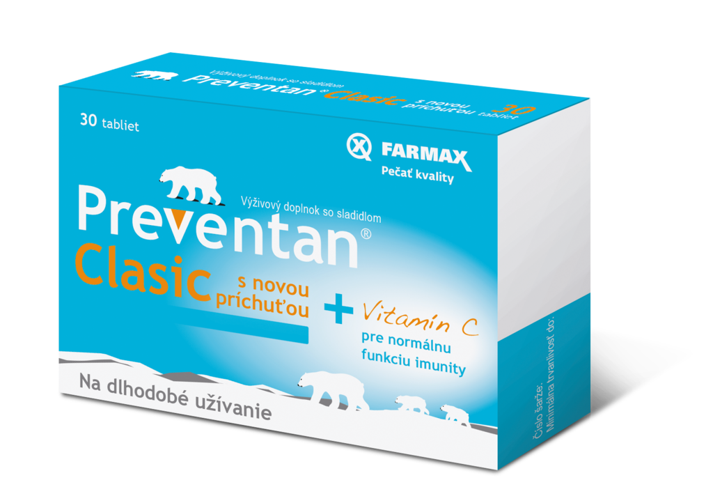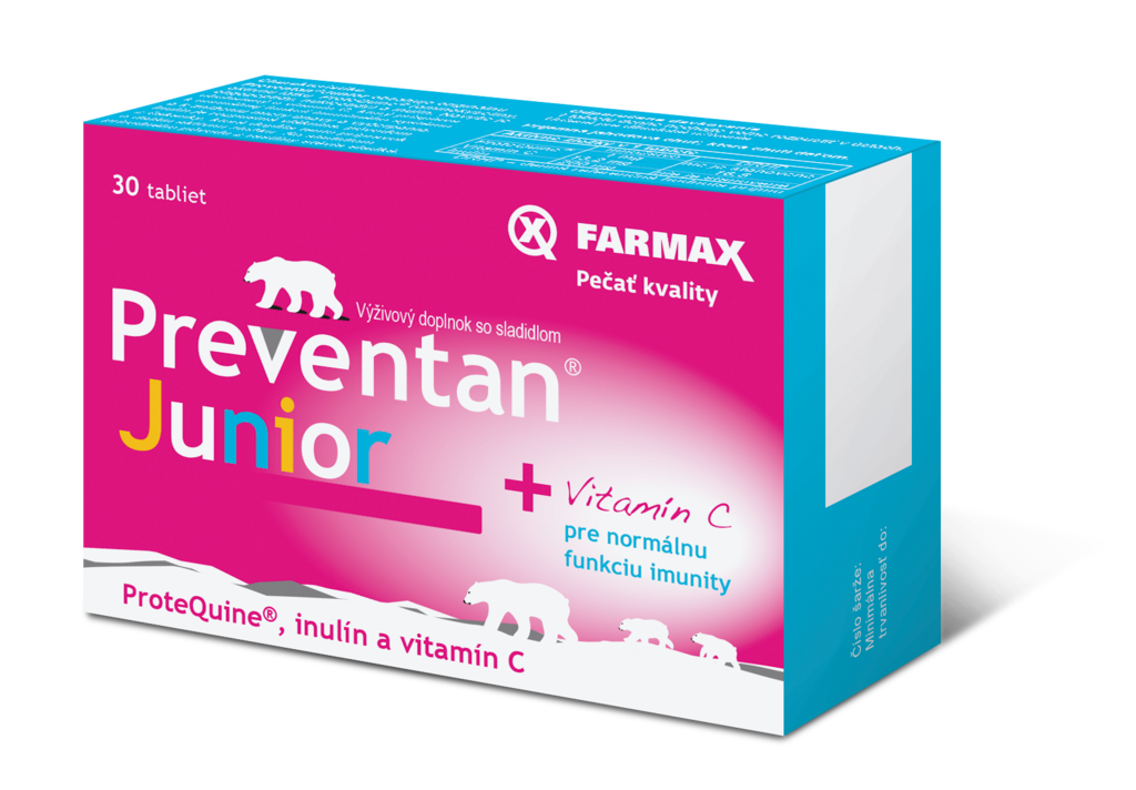 Pre dospelých voľte Preventan® Clasic, špeciálne pre deti od 3 rokov je vyvinutý Preventan® Junior. Cmúľacie tablety s príjemnými príchuťami sú určené pre každodenné posilňovanie imunity a vhodné aj na dlhodobé užívanie. Obsahujú originálnu patentovanú látku ProteQuine a vitamín C. Zoženiete v lekárni.