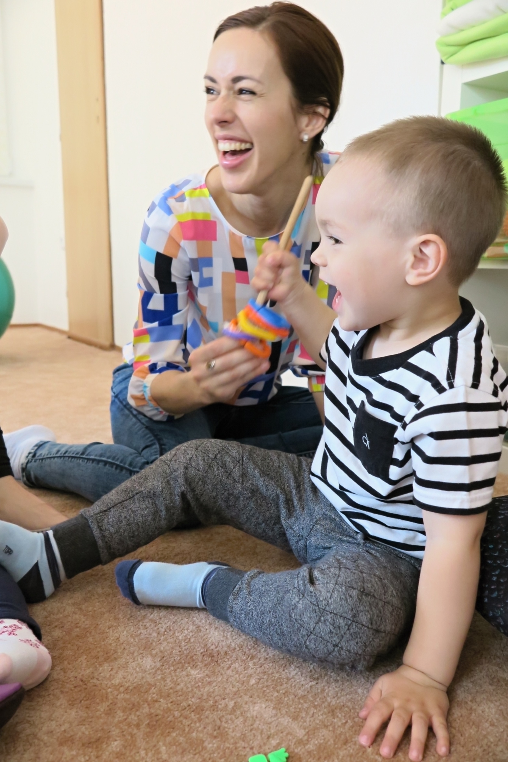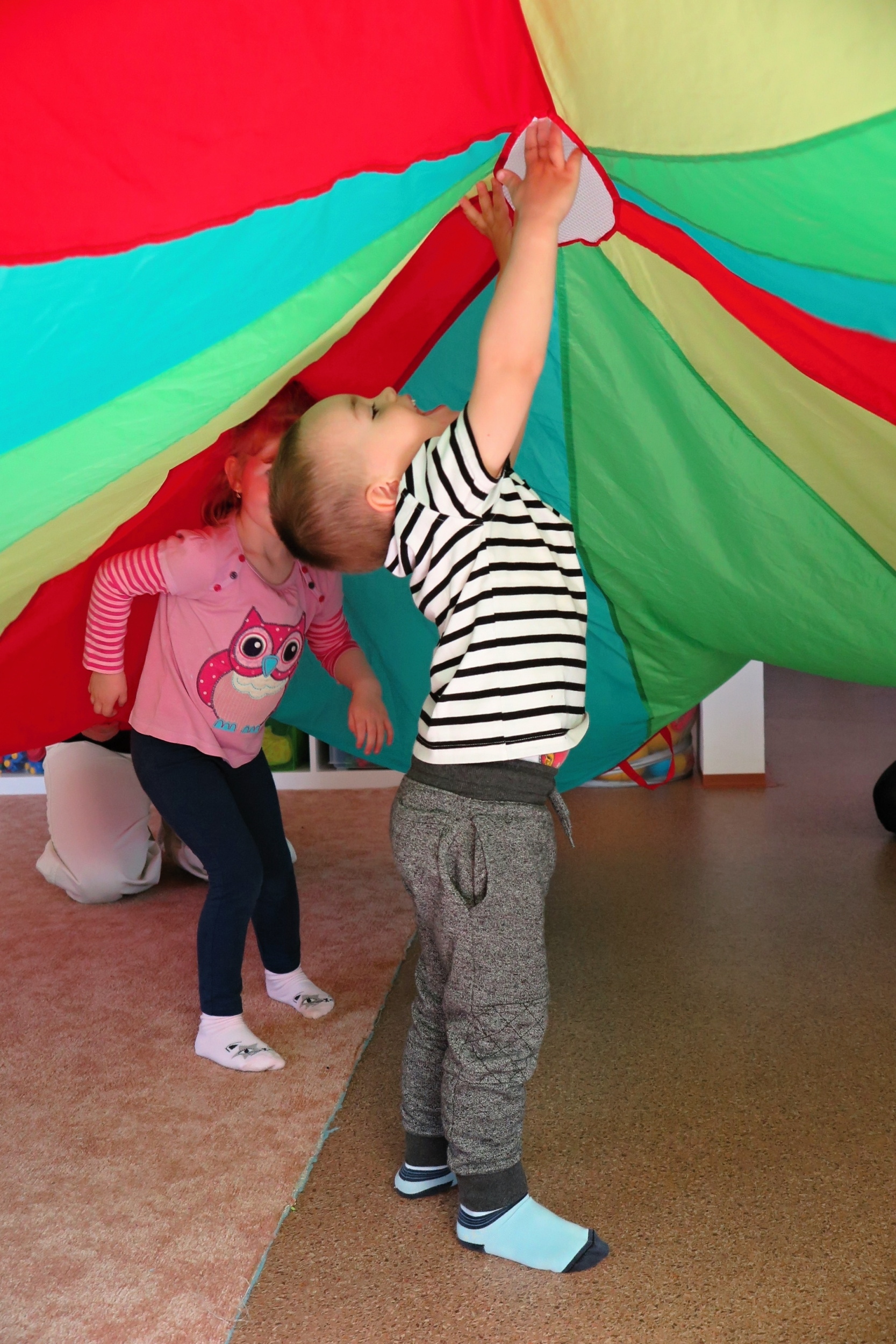 Na cvičeniach s deťmi od 1 – 2 rokov si užijeme veľa zábavy a hlavne sa naučíme pracovať v skupine s ostatnými kamarátmi spolu s rodičmi a lektorom.