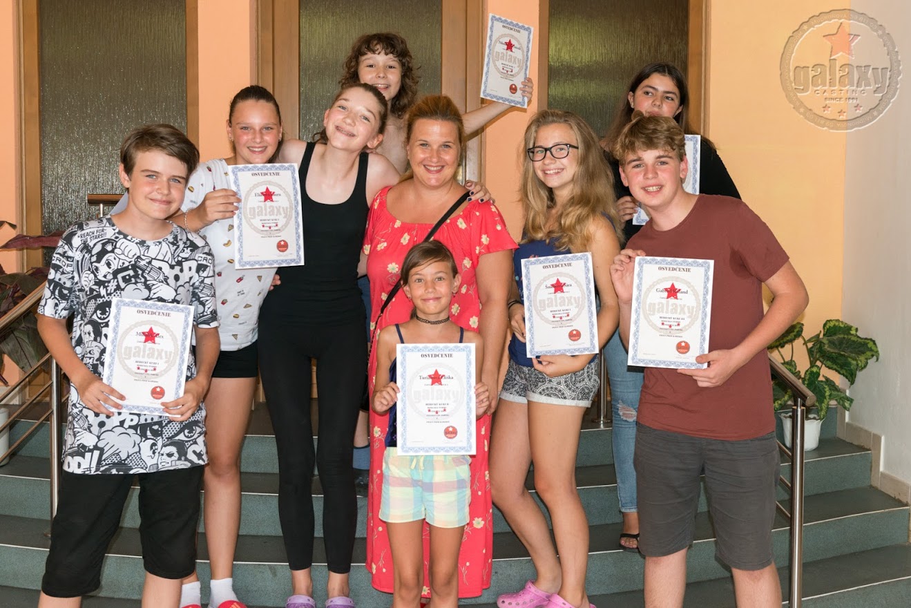 GALAXY ACTING STUDIO aj v tomto roku organizuje kurzy pre deti od 10 do 15 rokov, mládež aj dospelých, pre tých, ktorí si chcú osvojiť základy hereckej práce, získať skúsenosti s hraním pred kamerou, alebo sa pripraviť na štúdium herectva. Predovšetkým však pre tých ktorí majú talent a chcú si splniť svoj sen a skúsiť to. Herecká tvorba, reč, pohyb, práca pred kamerou a nakrúcanie spotov pod odborným vedením skúsených hercov a pedagógov je náplňou kurzov.